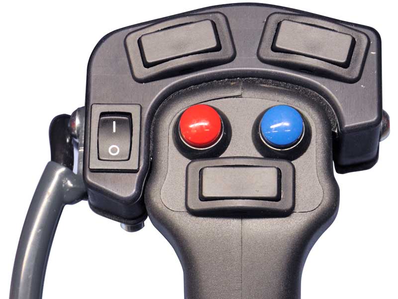 schakelaars rond de joystick (vb. hydraulische rotator op een boomstammenklem,