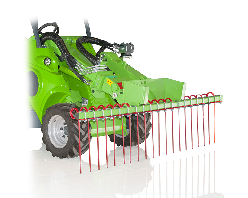 Hay dos modelos disponibles: uno con taladros normales y otro con taladros de alta resistencia. El rastrillo que incorpora los taladros de alta resistencia puede también recoger ramas o material más cotundente mientras va trabajando.