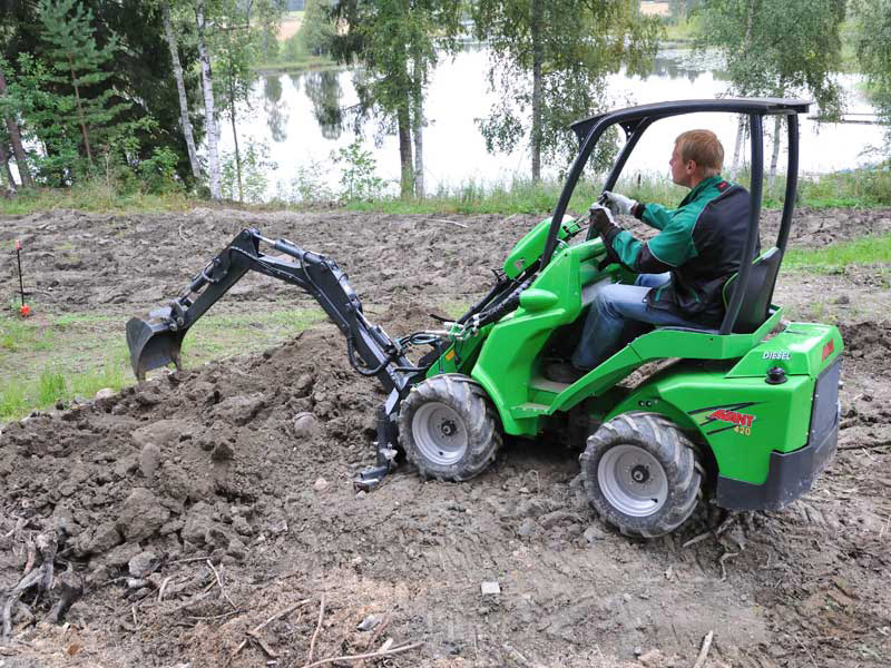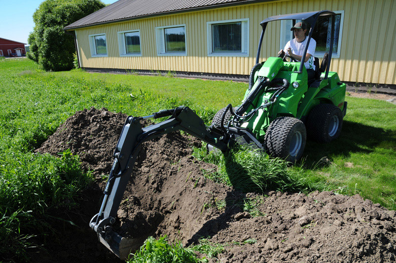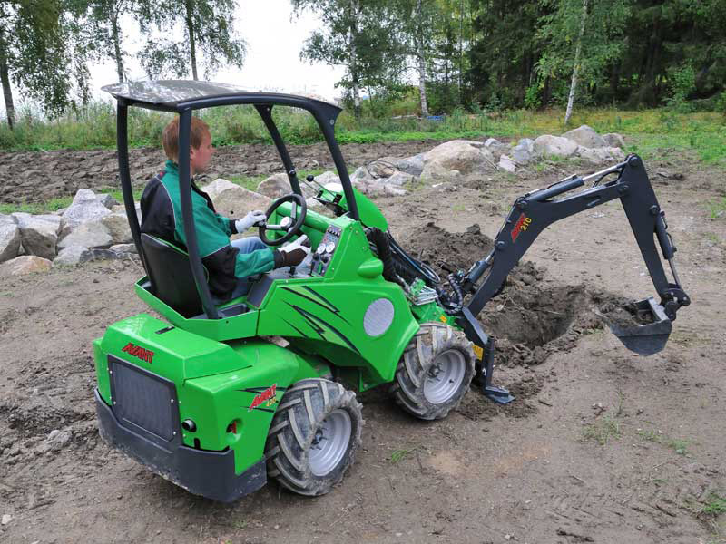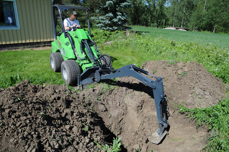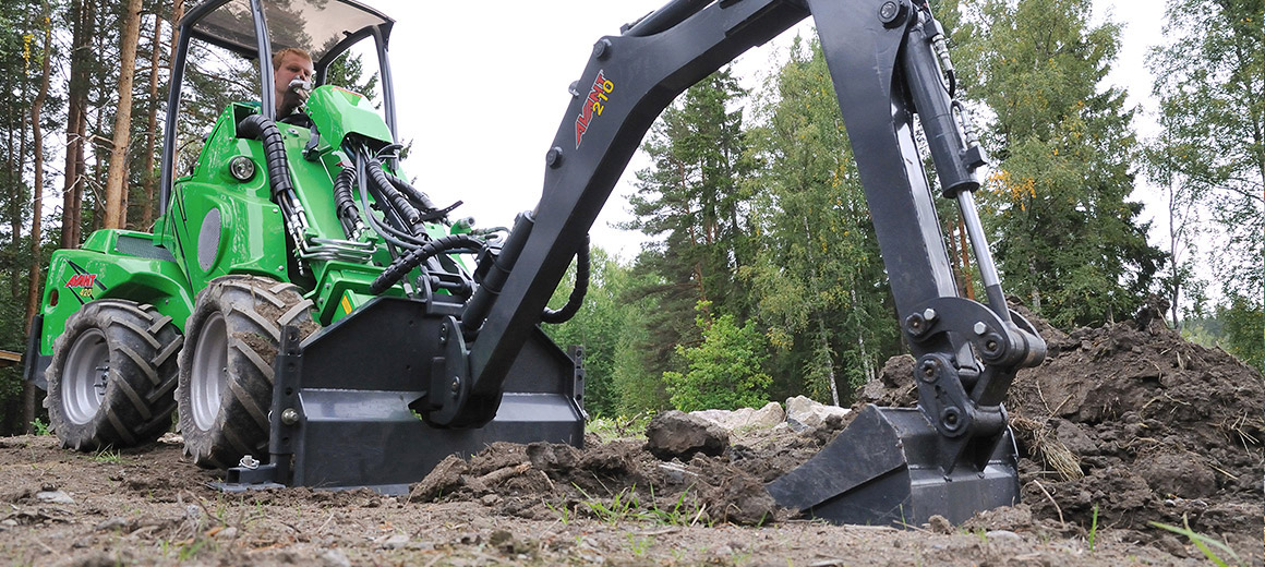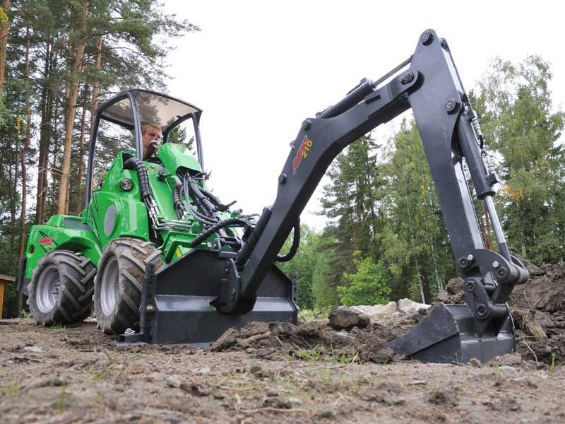 Avant backhoe 210 designs main focus was user friendliness and straight forward construction. Backhoe 210 is slightly larger than its smaller sister backhoe 170, which makes it more versatile and gives more digging depth.