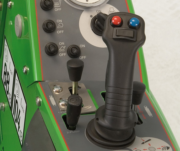 Braço telescópico e auxiliares hidráulicos podem ser equipados com válvulas solenóides e operadas através dos botões do joystick, em vez das alavancas de controlo separadas equipadas de origem. Facilita a operação do braço telescópico e dos acessórios hidráulicos acelerando o trabalho de forma considerável, uma vez que não é necessário retirar a mão do joystick: apenas necessita de pressionar os botões no joystick com o seu polegar.